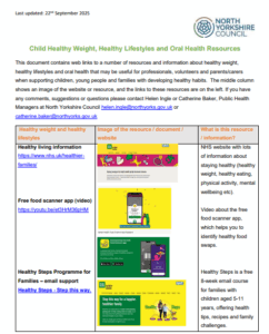 Other information about the NCMP can be found here: NCMP – Healthy Schools North Yorkshire